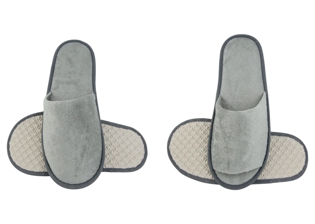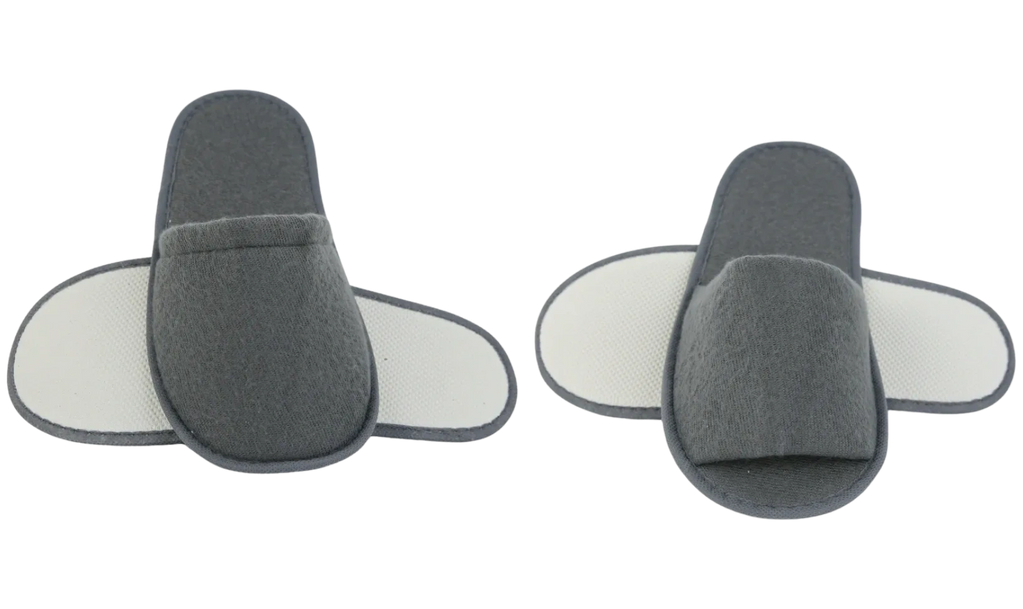 Für ein angenehmes Aufenthaltserlebnis Ihrer Gäste sorgt der exklusive Hotelslipper Prague Black (LM-Poly Terry). Dieser geschlossene oder offene Badeschuhe in Weiß ist ein echter Hingucker in jedem Hotelbereich. Mit 3 mm starkem Poly Velvet Fußbett und 3 mm hoher rutschhemmender Laufsohle. Paarweise einzeln verpackt Länge des