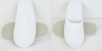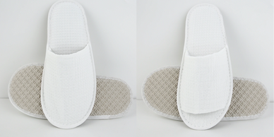 Für ein angenehmes Aufenthaltserlebnis Ihrer Gäste sorgt der exklusive Hotelslipper Berlin (Waffle). Dieser geschlossene oder offene Badeschuhe in Weiß ist ein echter Hingucker in jedem Hotelbereich. Mit 3 mm starkem Schaumstoff Fußbett und 5 mm hoher rutschhemmender Laufsohle. Paarweise einzeln verpackt Länge des Slippers: 28 cm. Geeignet für Schuhgrößen von 35 bis 45.