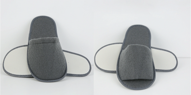 Für ein angenehmes Aufenthaltserlebnis Ihrer Gäste sorgt der exklusive Hotelslipper Paris (Canvas). Dieser geschlossene oder offene Badeschuhe in Grau ist ein echter Hingucker in jedem Hotelbereich. Mit 2,5 mm starkem Schaumstoff Fußbett und 5 mm hoher rutschhemmender Laufsohle. Paarweise einzeln verpackt Länge des Slippers: 28 cm. Geeignet für Schuhgrößen von 35 bis 45.